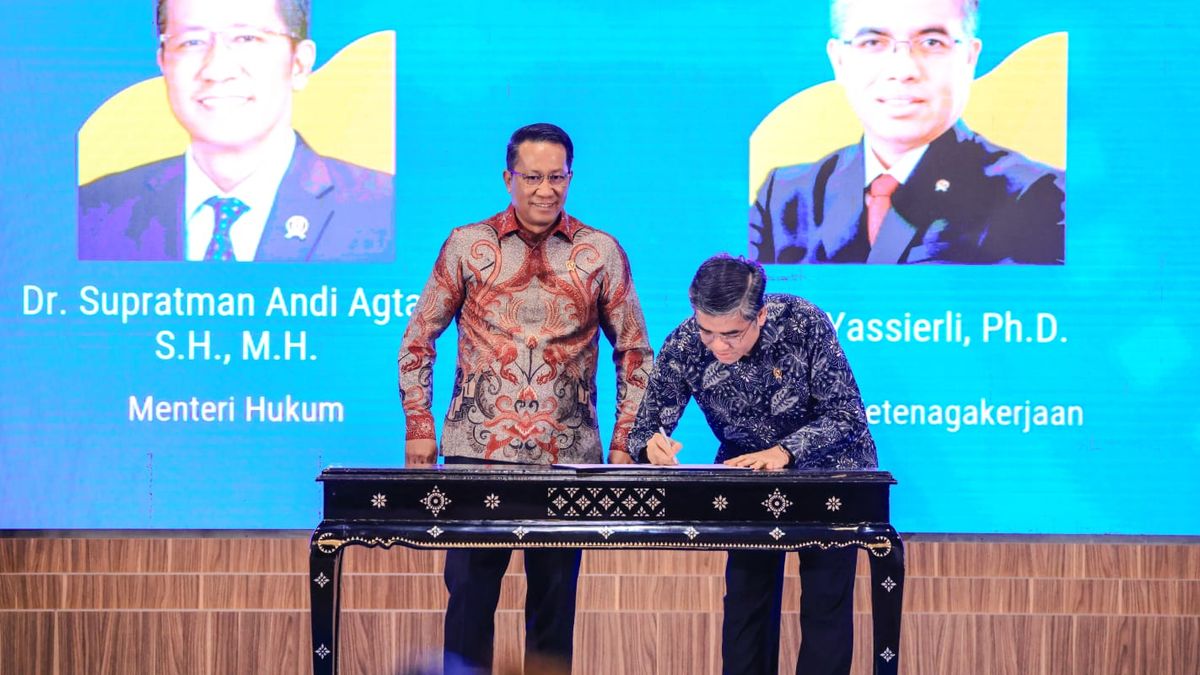 Jakarta Utara – Kementerian Ketenagakerjaan (Kemnaker) dan Kementerian Hukum dan Hak Asasi Manusia (Kemenkumham) sepakat memperkuat kerja sama lintas sektor melalui penandatanganan nota kesepahaman (MoU) di Jakarta, Kamis (12/9/2025). Kesepakatan ini menjadi langkah penting dalam memperkuat sinergi bidang hukum dan ketenagakerjaan, khususnya dalam menghadapi tantangan dunia kerja yang semakin kompleks di era globalisasi.